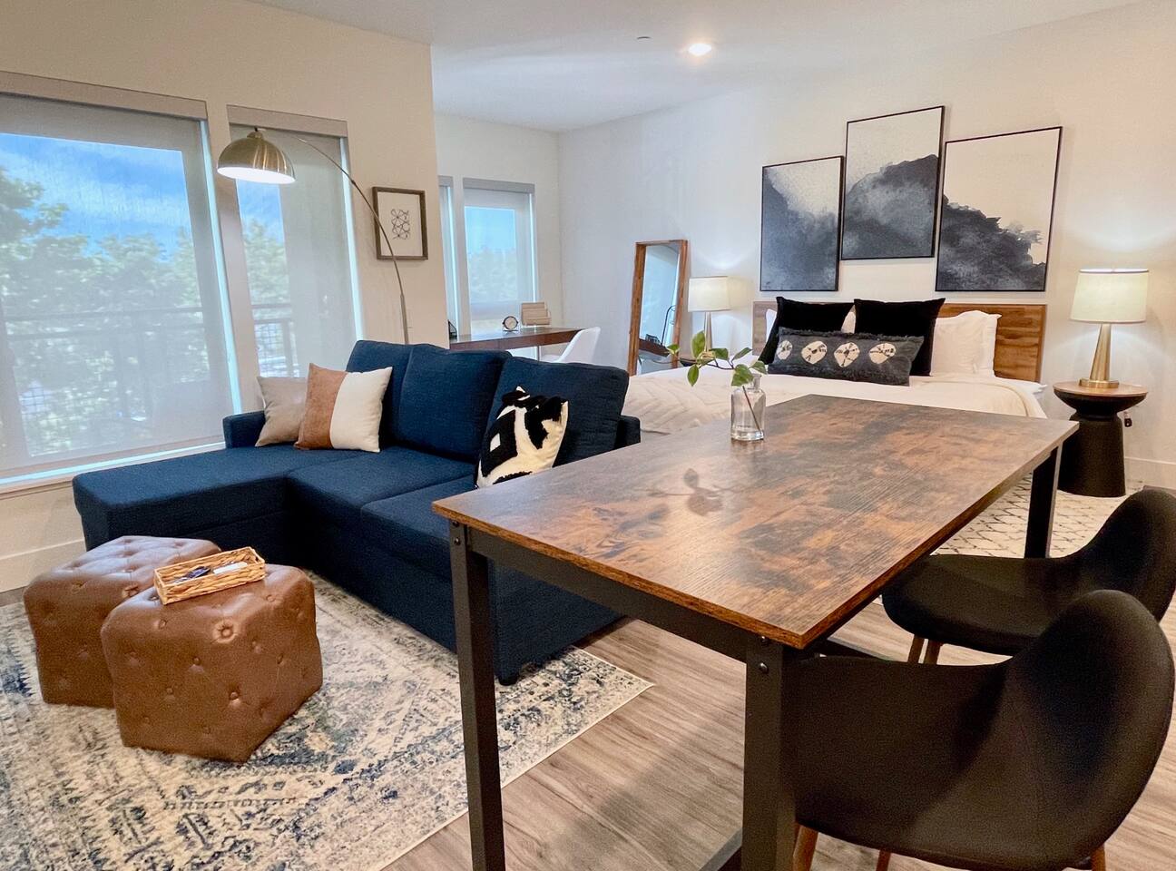 ✿ Our large and spacious Studio apartment is Designer furnished and outfitted for your enjoyment... ideal for your mid to long-term extended stays. The apartment has a fully-stocked Kitchen, in-unit Laundry, a spacious work desk, and FAST WiFi. ✿ Enjoy the serenity of the building's private courtyard with its water feature and fire pit. Or, take it up a level and relax with your favorite beverage on the view roof terrace lounge outfitted with an outdoor Kitchen, large TV, and spacious Hot Tub (available to use with restrictions) ✿ The location can't be beat, just steps from the best attractions that Walnut Creek has to offer, including the The Iron Horse Trail. We invite you to visit our curated suburban oasis with an urban flair. ✿ All Advanstay apartments are powered by 100% Renewable Solar & Wind Energy, using locally produced electricity. By staying with Advanstay, our Guests are supporting our mission of completely eliminating our electricity-based greenhouse gas emissions. We thank you ❤