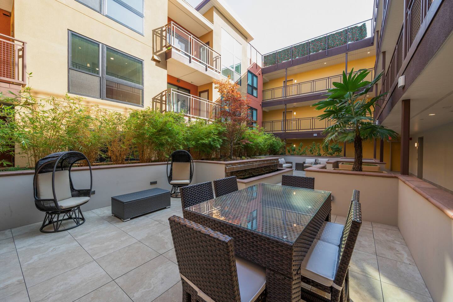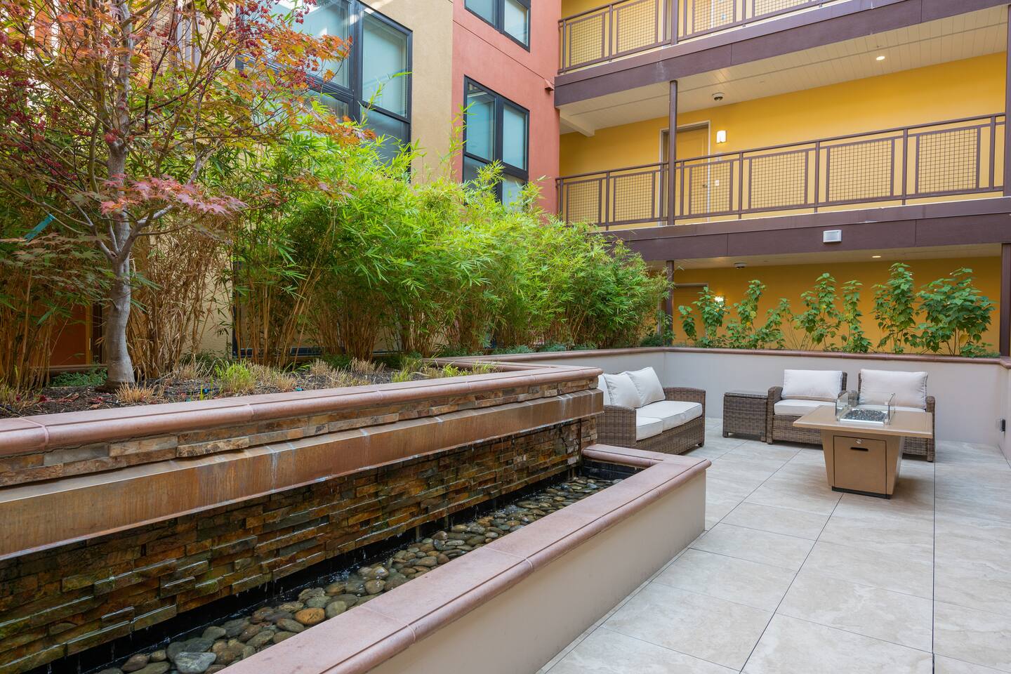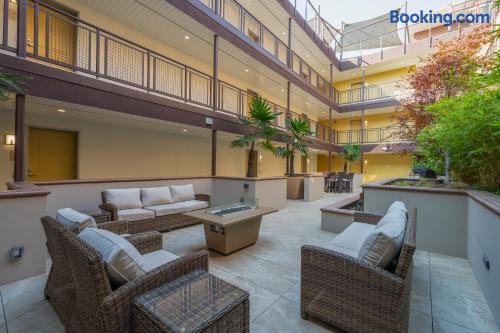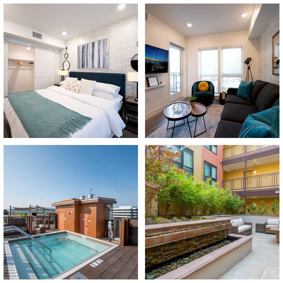 ✿ Our intimate 1 bed/1 bath apartment is designer furnished and outfitted for your enjoyment. We are set up for your mid to long-term extended stays. We have a portable folding desk for your use as a dedicated workspace. ✿ Enjoy the serenity of the building's private courtyard with its water feature and fire pit. Or, take it up a level and relax with your favorite beverage on the view roof terrace lounge outfitted with an outdoor Kitchen, large TV, and spacious Hot Tub. ✿ The location can't be beat, just steps from all the best restaurants, shopping, and cultural attractions that Walnut Creek has to offer. We invite you to visit our curated suburban oasis with an urban flair. ✿ All Advanstay apartments are powered by 100% Renewable Solar & Wind Energy, using locally produced electricity. By staying with Advanstay, our Guests are supporting our mission of completely eliminating our electricity-based greenhouse gas emissions. We thank you ❤