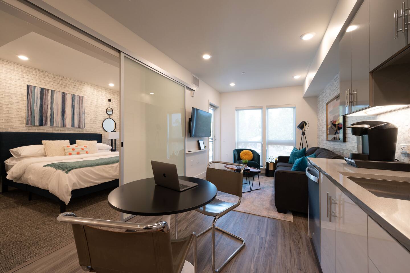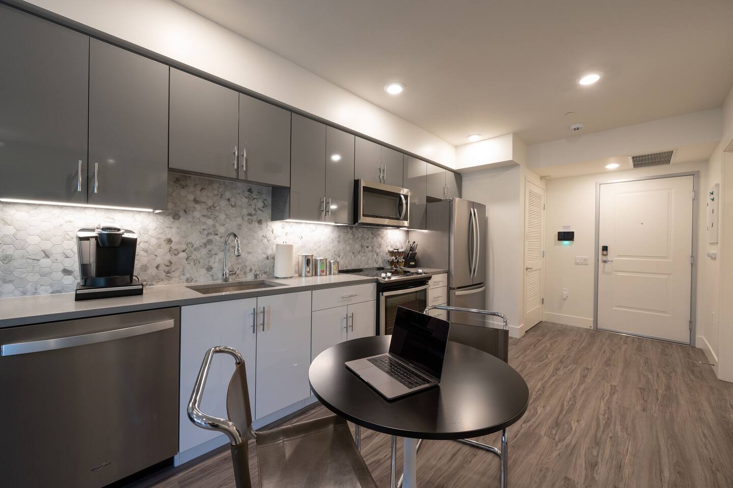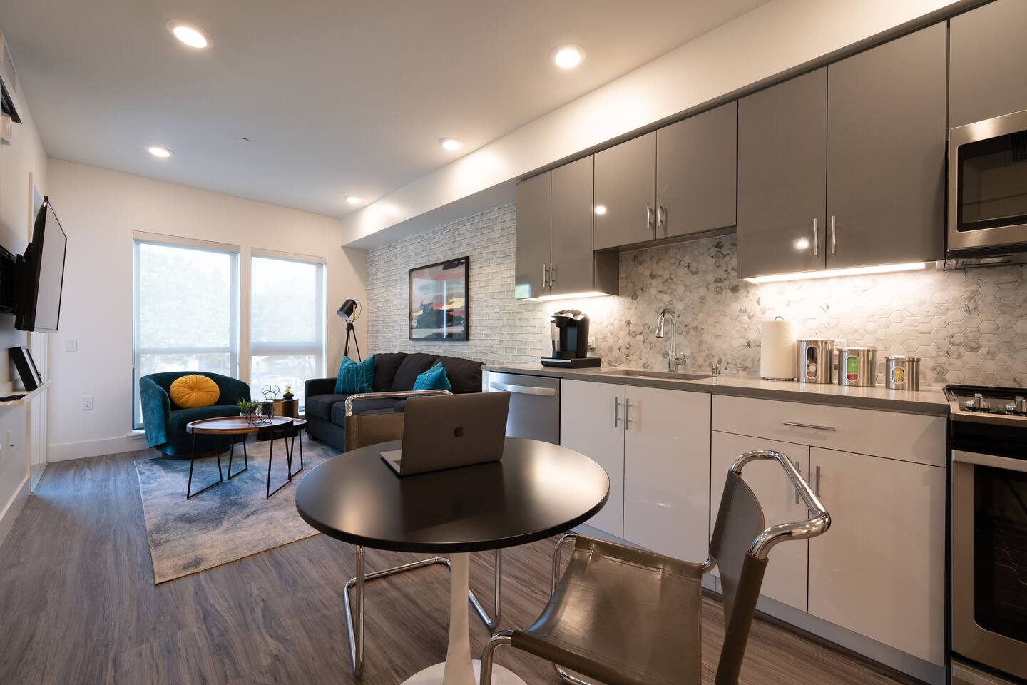 ✿ Our intimate 1 bed/1 bath apartment is designer furnished and outfitted for your enjoyment. We are set up for your mid to long-term extended stays. We have a portable folding desk for your use as a dedicated workspace. ✿ Enjoy the serenity of the building's private courtyard with its water feature and fire pit. Or, take it up a level and relax with your favorite beverage on the view roof terrace lounge outfitted with an outdoor Kitchen, large TV, and spacious Hot Tub. ✿ The location can't be beat, just steps from all the best restaurants, shopping, and cultural attractions that Walnut Creek has to offer. We invite you to visit our curated suburban oasis with an urban flair. ✿ All Advanstay apartments are powered by 100% Renewable Solar & Wind Energy, using locally produced electricity. By staying with Advanstay, our Guests are supporting our mission of completely eliminating our electricity-based greenhouse gas emissions. We thank you ❤