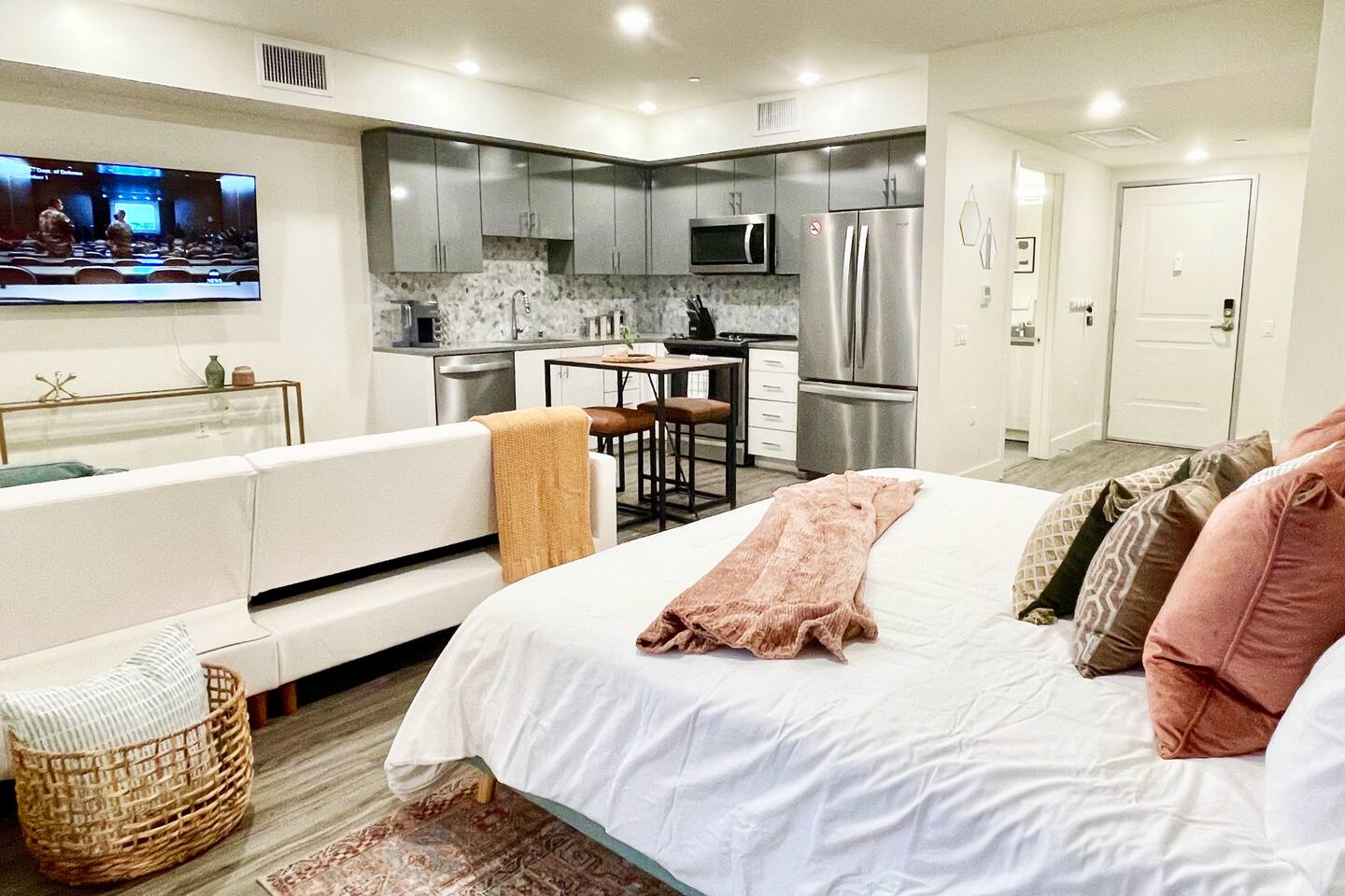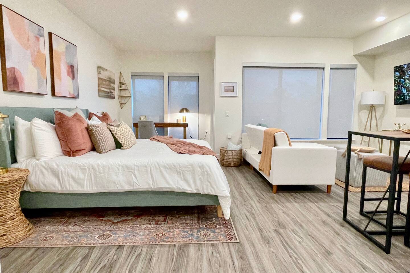 ✿ Our large Studio apartment is designer furnished and outfitted for your enjoyment... ideal for your mid to long-term extended stays. The apartment has a fully-stocked Kitchen, in-unit Laundry, a spacious work desk, and FAST WiFi. ✿ Enjoy the serenity of the building's private courtyard with its water feature and fire pit. Or, take it up a level and relax with your favorite beverage on the view roof terrace lounge outfitted with an outdoor Kitchen, large TV, and spacious Hot Tub (available to use with restrictions) ✿ The location can't be beat, just steps from the best attractions that Walnut Creek has to offer, including the The Iron Horse Trail. We invite you to visit our curated suburban oasis with an urban flair. ✿ All Advanstay apartments are powered by 100% Renewable Solar & Wind Energy, using locally produced electricity. By staying with Advanstay, our Guests are supporting our mission of completely eliminating our electricity-based greenhouse gas emissions. We thank you ❤